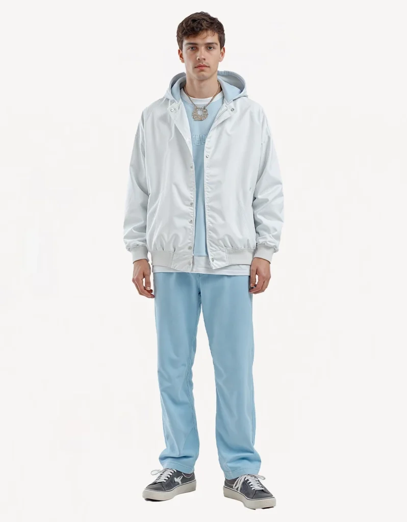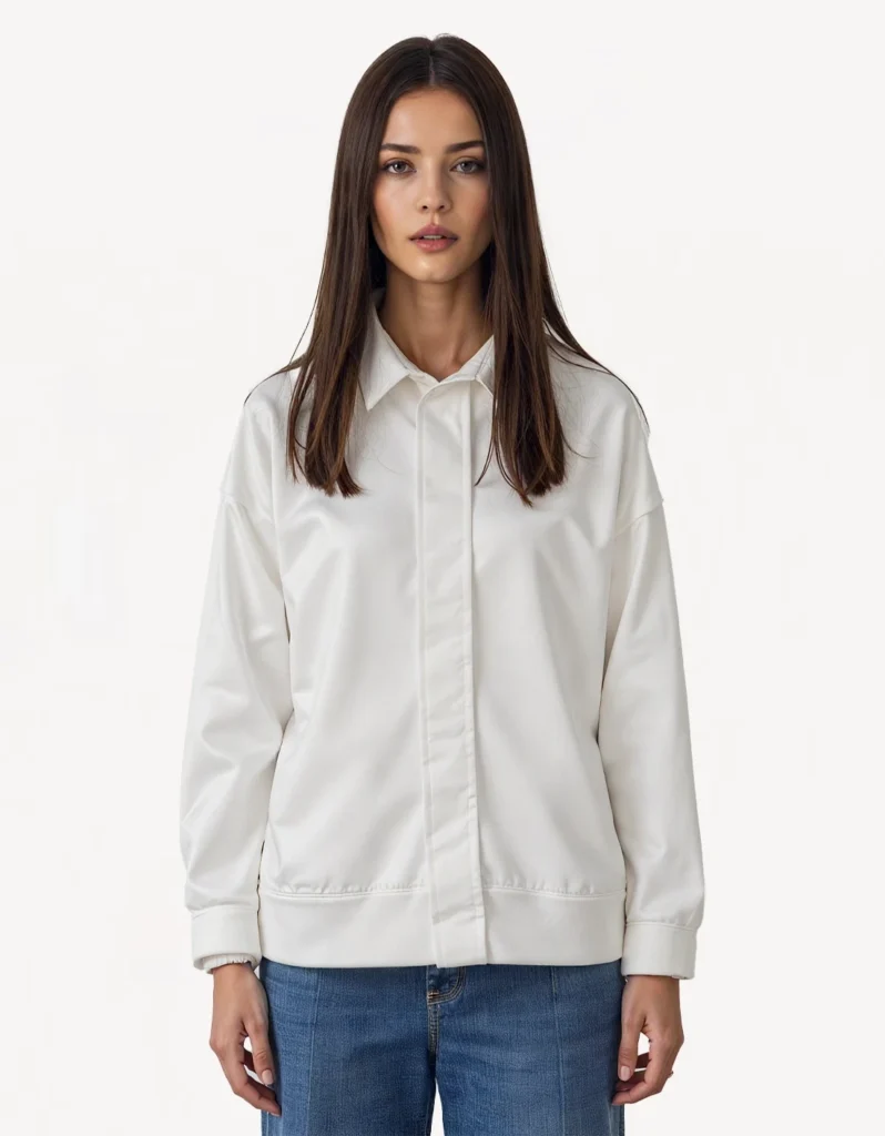 High collar zippered white jacket